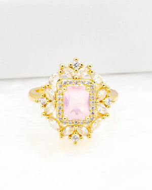 Anillo circon rosado, tiene baño de rodio e incluye 1 unidad