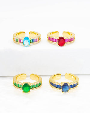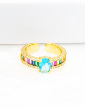 Anillo circones de colores, tiene baño de rodio e incluye 1 unidad