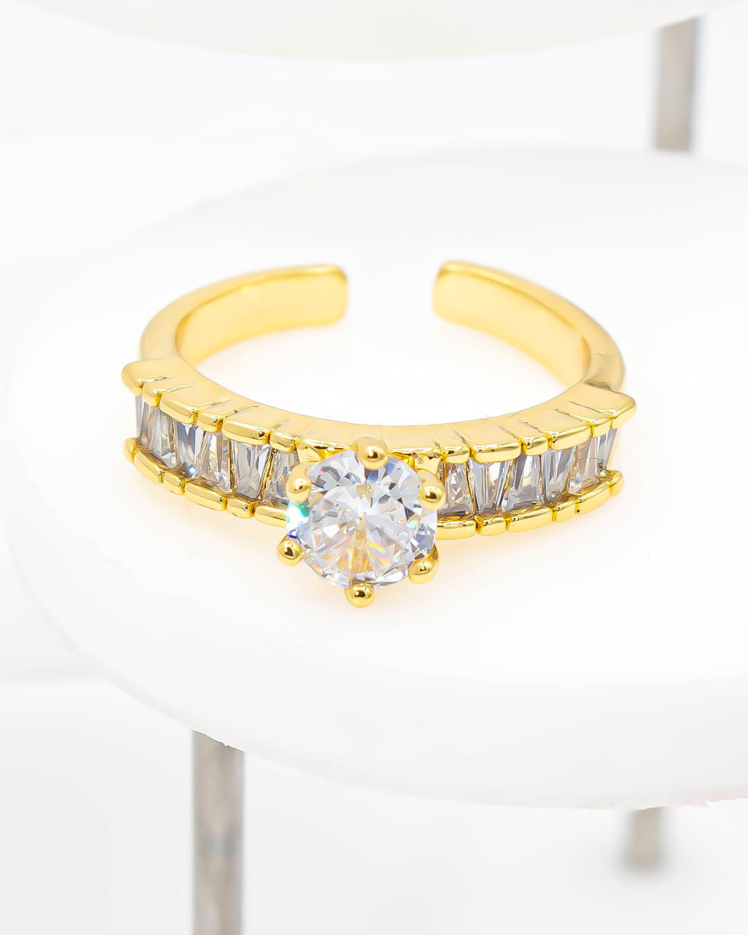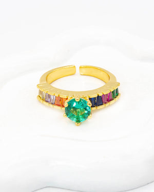 Anillo con piedra y circones, tiene baño de rodio e incluye 1 unidad.