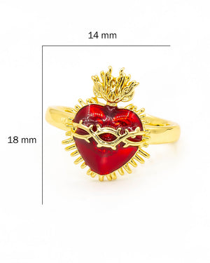 Anillo corazón rojo, tiene baño de rodio, incluye 1 unidad.