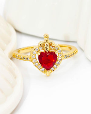 Anillo corazón rojo, tiene baño de rodio, incluye 1 unidad.