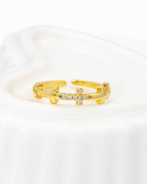 Anillo cruces, tiene baño de rodio, incluye 1 unidad.