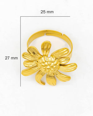 Anillo de flor en acero, es graduable e incluye 1 unidad.