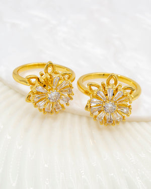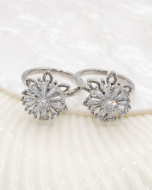 Anillo giratorio de flor, tiene baño de rodio e incluye 1 unidad.