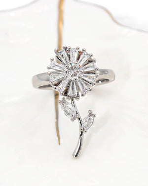 Anillo giratorio de flor, tiene baño de rodio e incluye 1 unidad.