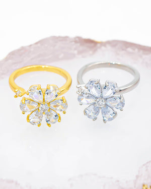 Anillo giratorio de flor, tiene baño de rodio e incluye 1 unidad.