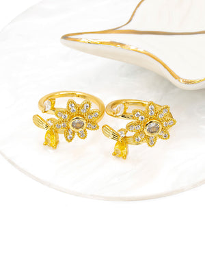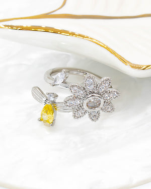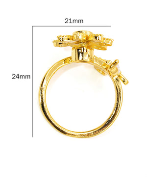 Anillo giratorio de flor con una hoja, tiene baño de rodio e incluye 1 unidad.