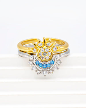 Anillo sol y luna, tiene baño de rodio e incluye 1 unidad.