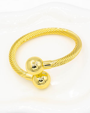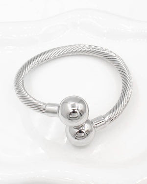 Brazalete entorchado con balines, es ajustable, tiene baño de rodio e incluye 1 unidad.