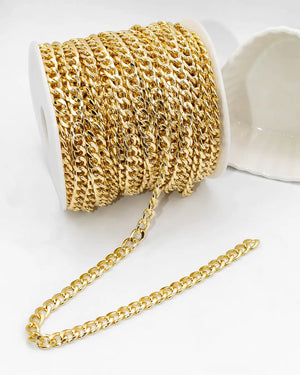 Cadena cubana martillada lisa por metro, tiene baño de rodio, se vende por metros.