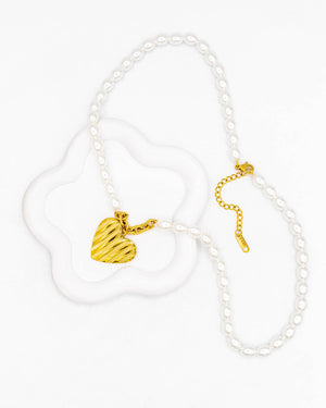Cadena de perlas con dije de corazón de acero e incluye 1 unidad
