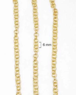 Cadena eslabón redondo doble por metro, tiene baño de rodio, se vende por metros.
