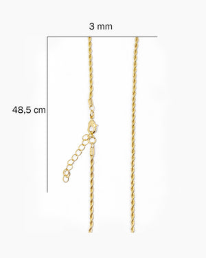 Cadena lazo de 3MM, tiene baño de rodio, incluye 1 unidad.