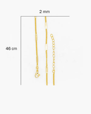 Cadena con placas tranzadas, tiene baño de rodio e incluye 1 unidad.