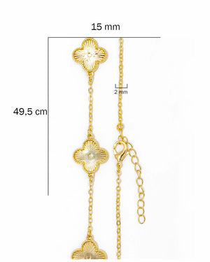 Cadena trébol dorada, tiene baño de rodio, incluye 1 unidad.