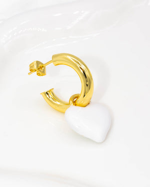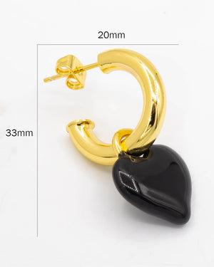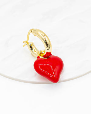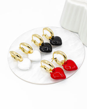 Candongas con corazón colgando, tiene baño de rodio e incluye 1 par.