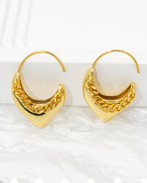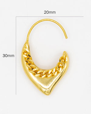 Candongas doradas de corazón con una cadena, tiene baño de rodio e incluye 1 par.