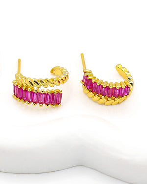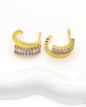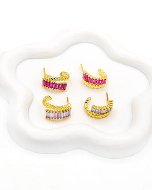 Candonga doble con textura y circones, tiene baño de rodio e incluye 1 unidad.