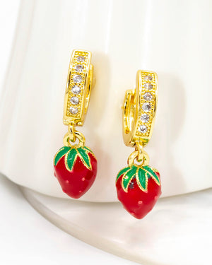 Candongas de fresa roja, tiene baño de rodio e incluye 1 par.