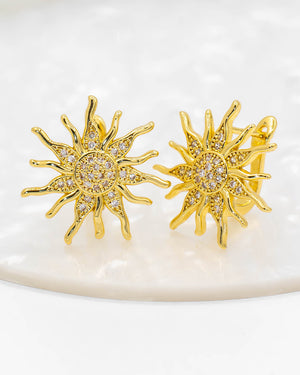 Candonga de sol con circones, tiene baño de rodio, incluye 1 par.