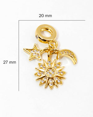 Charm sol. luna y estrella, tiene baño de rodio, incluye 1 unidad.