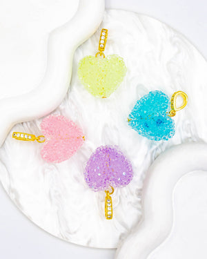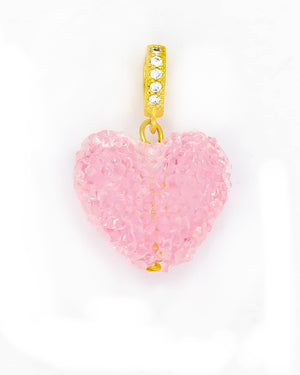Dije de corazón con textura azucarada, tiene baño de rodio e incluye 1 unidad.