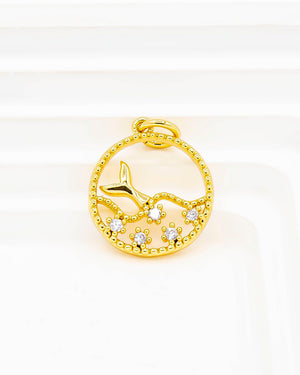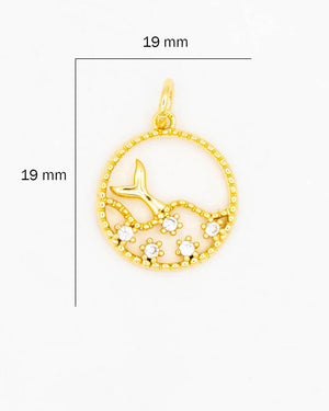 Dije de aleta y olas con flores, tiene baño de rodio e incluye 1 unidad