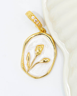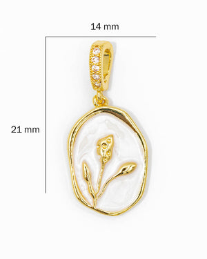 Dije broche flor dorada, tiene baño de rodio, incluye 1 unidad.