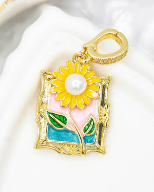 Dije broche girasol, tiene baño de rodio, incluye 1 unidad.