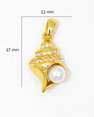 Dije caracol perla con circones, tiene baño de rodio, incluye 1 unidad.