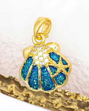 Dije concha azul, tiene baño de rodio, incluye 1 unidad.