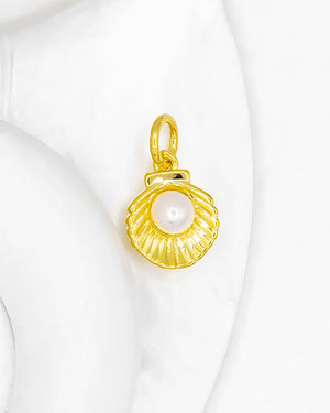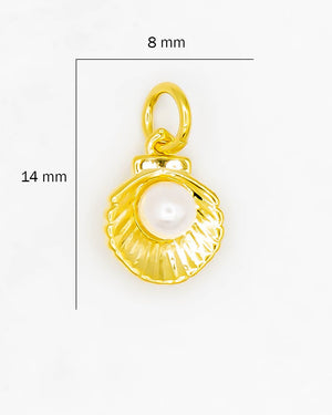 Dije concha de mar mini con perla en medio, tiene baño de rodio e incluye 1 unidad