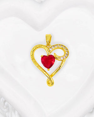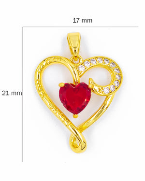 Dije de corazón con circones blancos y uno rojo, tiene baño de rodio e incluye 1 unidad.