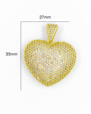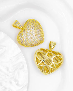 Dije de corazón con circones y con siluetas en el reverso, tiene baño de rodio e incluye 1 unidad.