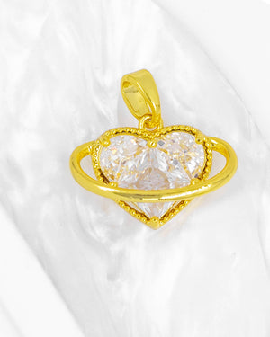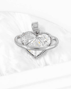 Dije de corazón con aro, tiene baño de rodio e incluye 1 unidad.