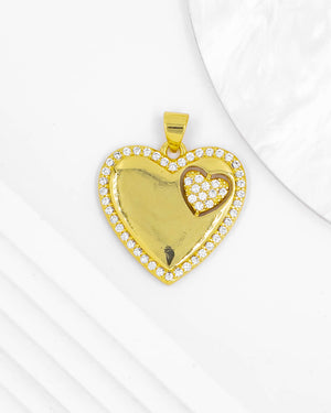 Dije de corazón liso con borde de circones blancos, tiene baño de rodio e incluye 1 unidad.