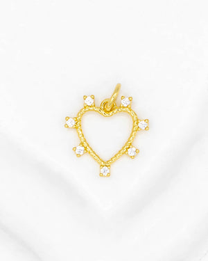 Dije corazón con puntas y circones blancos, tiene baño de rodio e incluye 1 unidad
