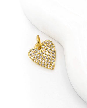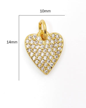 Dije de corazón con circones, tiene baño de rodio e incluye 1 unidad.
