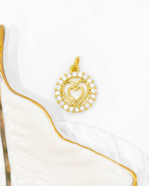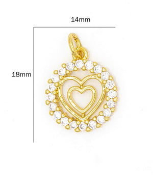 Dije de corazón con circones, tiene baño de rodio e incluye 1 unidad.