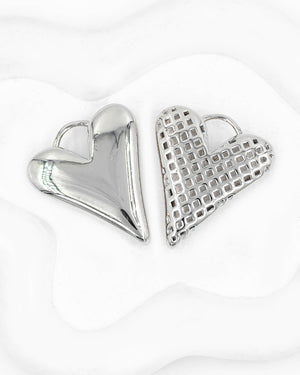 Dije de corazón liso enfrente y enrejado atrás, tiene baño de rodio e incluye 1 unidad.