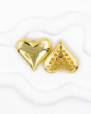 Dije de corazón liso al frente con rejilla de corazón al reverso, tiene baño de rodio e incluye 1 unidad.