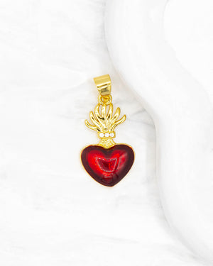 Dije corazón rojo, tiene baño de rodio e incluye 1 unidad