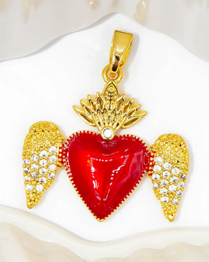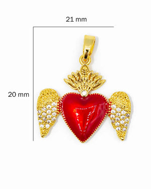 Dije corazón con alas y circones, tiene baño de rodio, incluye 1 unidad.