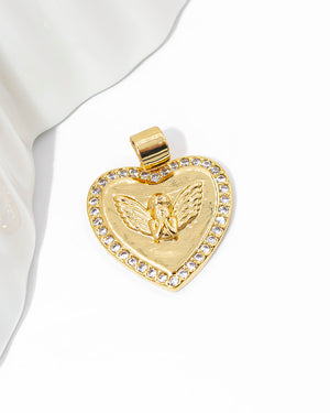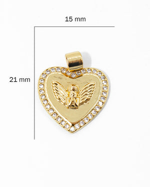 Dije corazón liso ángel, tiene baño de rodio, incluye 1 unidad.