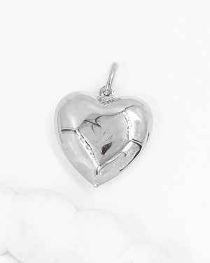 Dije de corazón liso chunky, tiene baño de rodio e incluye 1 unidad.