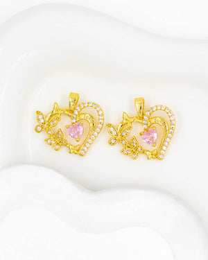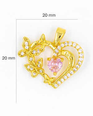 Dije de corazón con mariposas y circones, tiene baño de rodio e incluye 1 unidad.