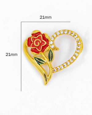 Dije de corazón con circones y una rosa, tiene baño de rodio e incluye 1 unidad.