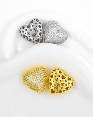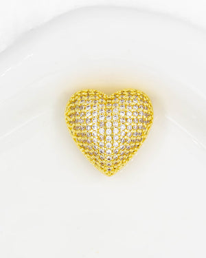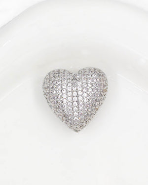 Dije de corazón chunky de pasador con circones, tiene baño de rodio e incluye 1 unidad.