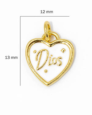 Dije corazón Dios blanco, tiene baño de rodio, incluye 1 unidad.