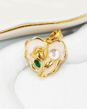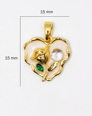 Dije corazón flor, tiene baño de rodio, incluye 1 unidad.